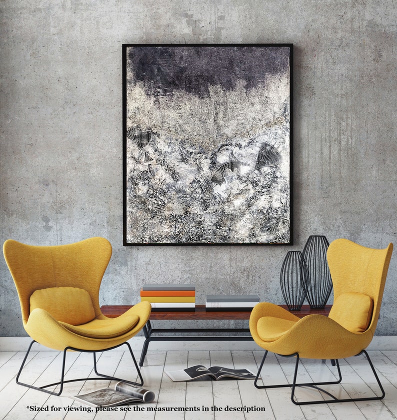 Original Abstract Painting Large Wall Art Gold Gray Glitter Etsy