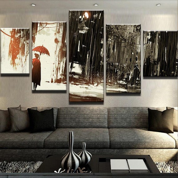 Lonely Rain Canvas Abstract Wall Art Rainy Background Etsy