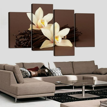 4pcs Large Brown Orchid Floral Canvas Prints Pictures Painting