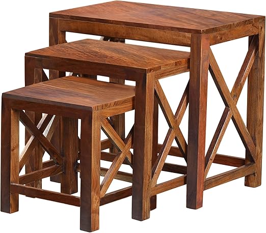 Amazon Com Yotreasure Solid Acacia Wood Nesting End Side Tables