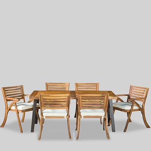 Walker Edison 7 Piece Acacia Wood Patio Dining Set With Cushions