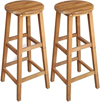 Amazon Com Unfade Memory Bar Chairs Barstools Wooden Stool 2 Pcs Solid Acacia Wood Classic Design Style Kitchen Dining