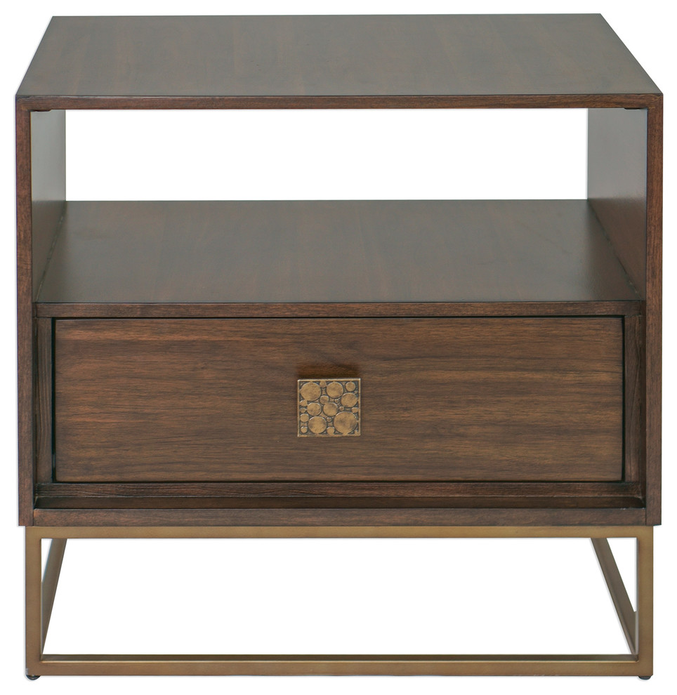 Square Wood And Metal Accent Table With Shelf Storage Dark Walnut
