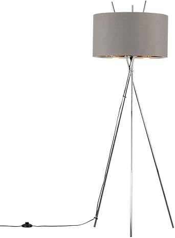 Camden Chrome Tripod Floor Lamp With Xl Grey And Gold Reni Shade