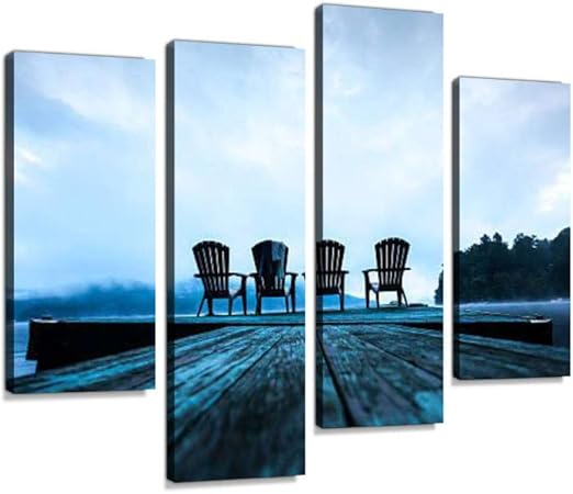 Amazon Com Adirondack Chairs On Dock Canvas Wall Art Hanging