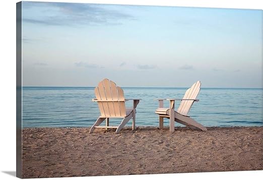 Amazon Com Two Adirondack Chairs On The Beach Canvas Wall Art