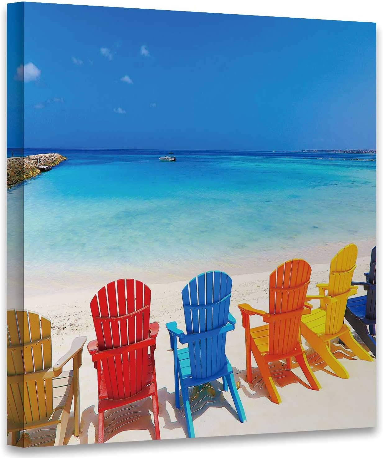 Adirondack Beach Chairs On A Sun Art Canvas Print Poster Wall