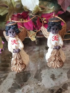 Black African American Angels Set Of 2 Christmas Ornaments Ebay