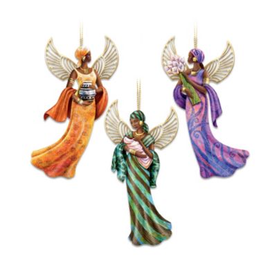 Angels Of Ivory Gold African American Christmas Ornament Set