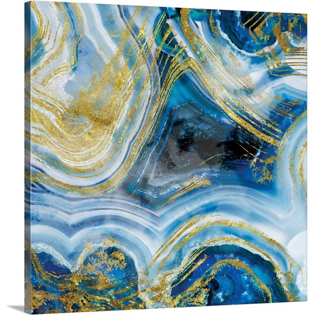 Mercer41 Indigo Agate I Graphic Art Print On Wrapped Canvas