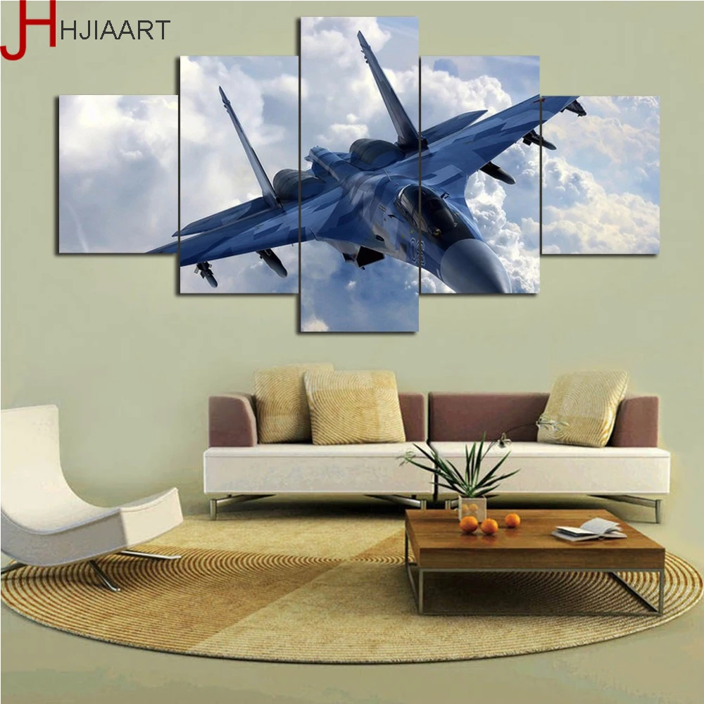 Framed Modern Canvas Art 5 Piece Airplane Canvas Painting Print