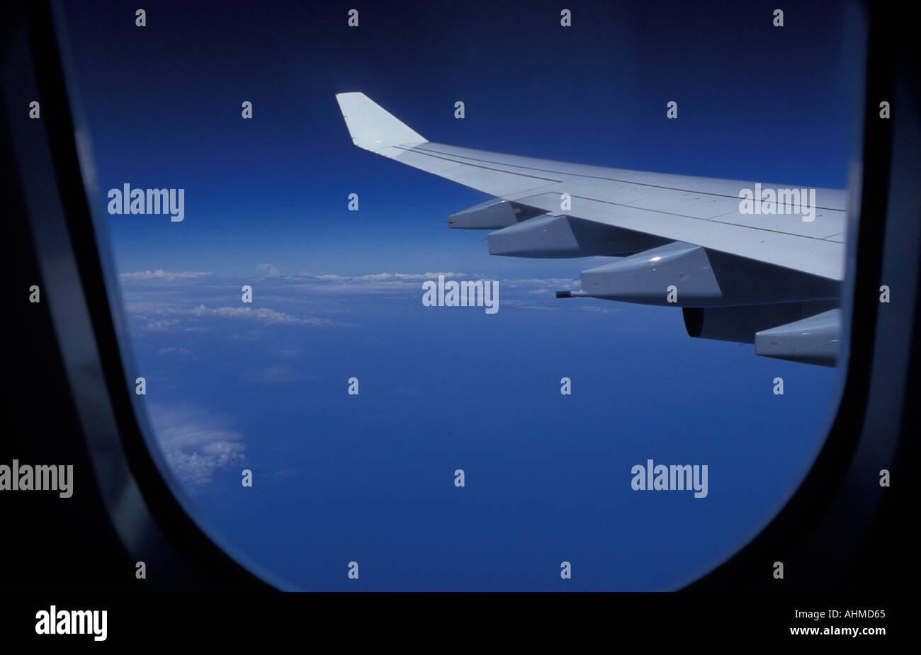 View From A Jet Airplane In Flight Framed By The Window Stock