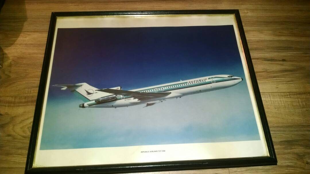Vintage Republic Airlines Poster Of 727 200 Airplane Framed Etsy
