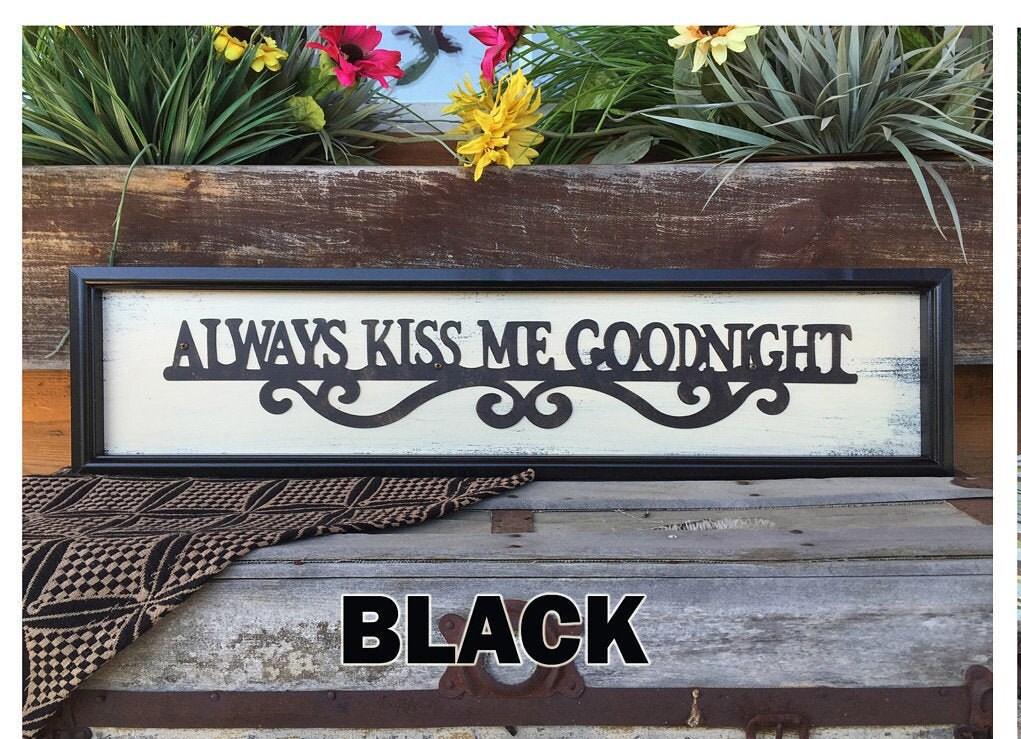 Always Kiss Me Goodnight Sign Framed Reclaimed Wood Black Metal