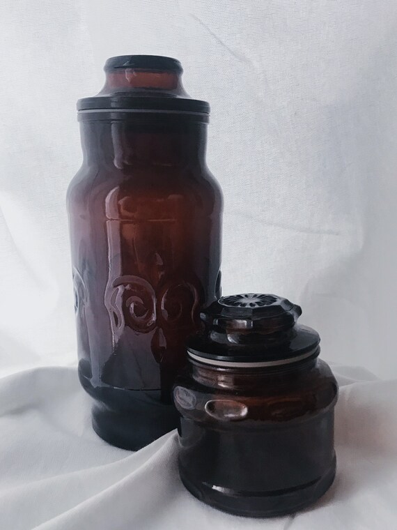 Vintage Glass Canisters 1960s Amber Glass Mid Century Canister Set Vintage Canisters Flea Market Decorating Bottles And Jars