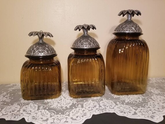 Set Of 3 Pineapple Canisters Amber On Onekingslane Com Glass Canister Set Food Storage Set Artland