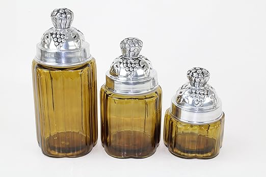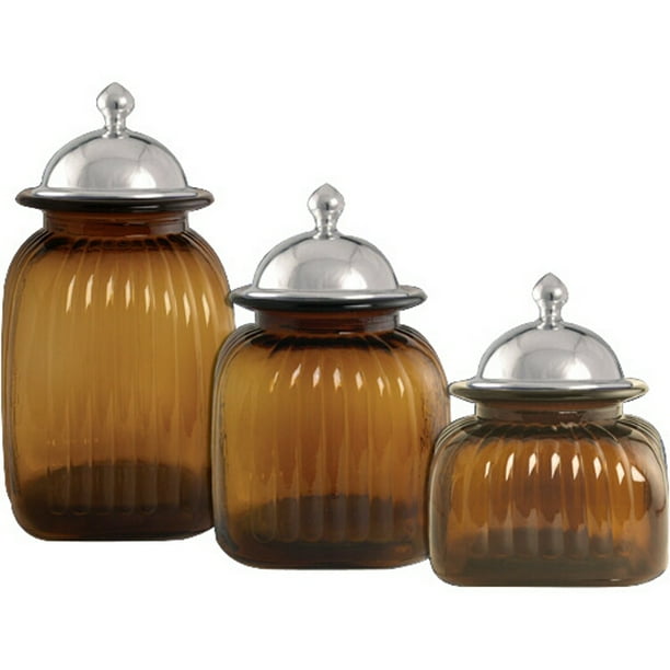 Antiqued Amber Canister Set Of 3 Glass Kitchen Canisters Glass Canister Set Kitchen Canisters