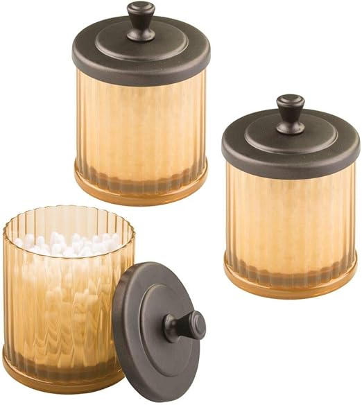 Amazon Com Mdesign Fluted Bathroom Vanity Storage Organizer Canister Apothecary Jar For Cotton Swabs Rounds Balls Makeup Sponges Bath Salts 3 Pack Amber