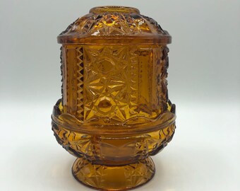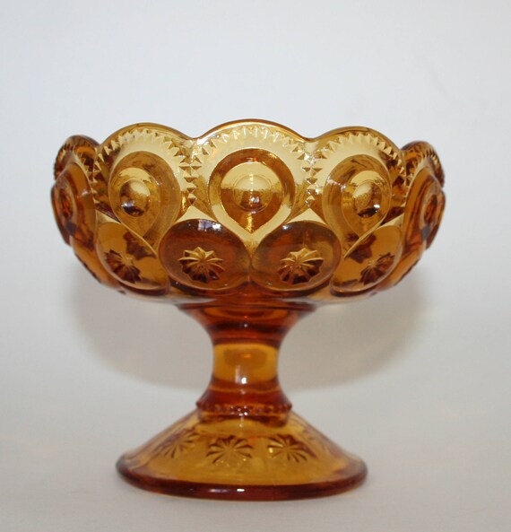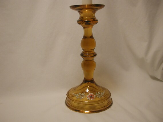 Vintage Amber Glass Candlestick Holder L E Smith Moon And Etsy