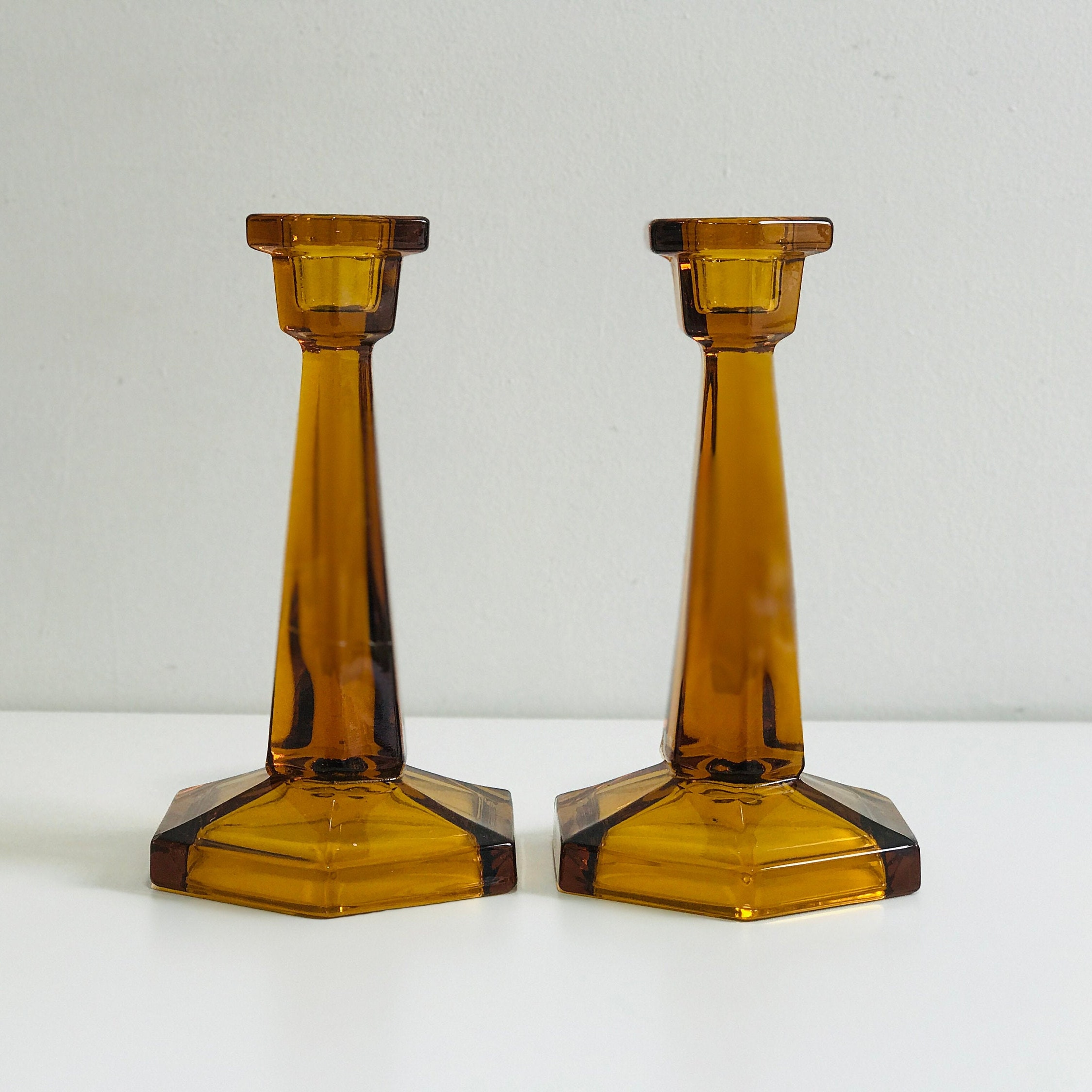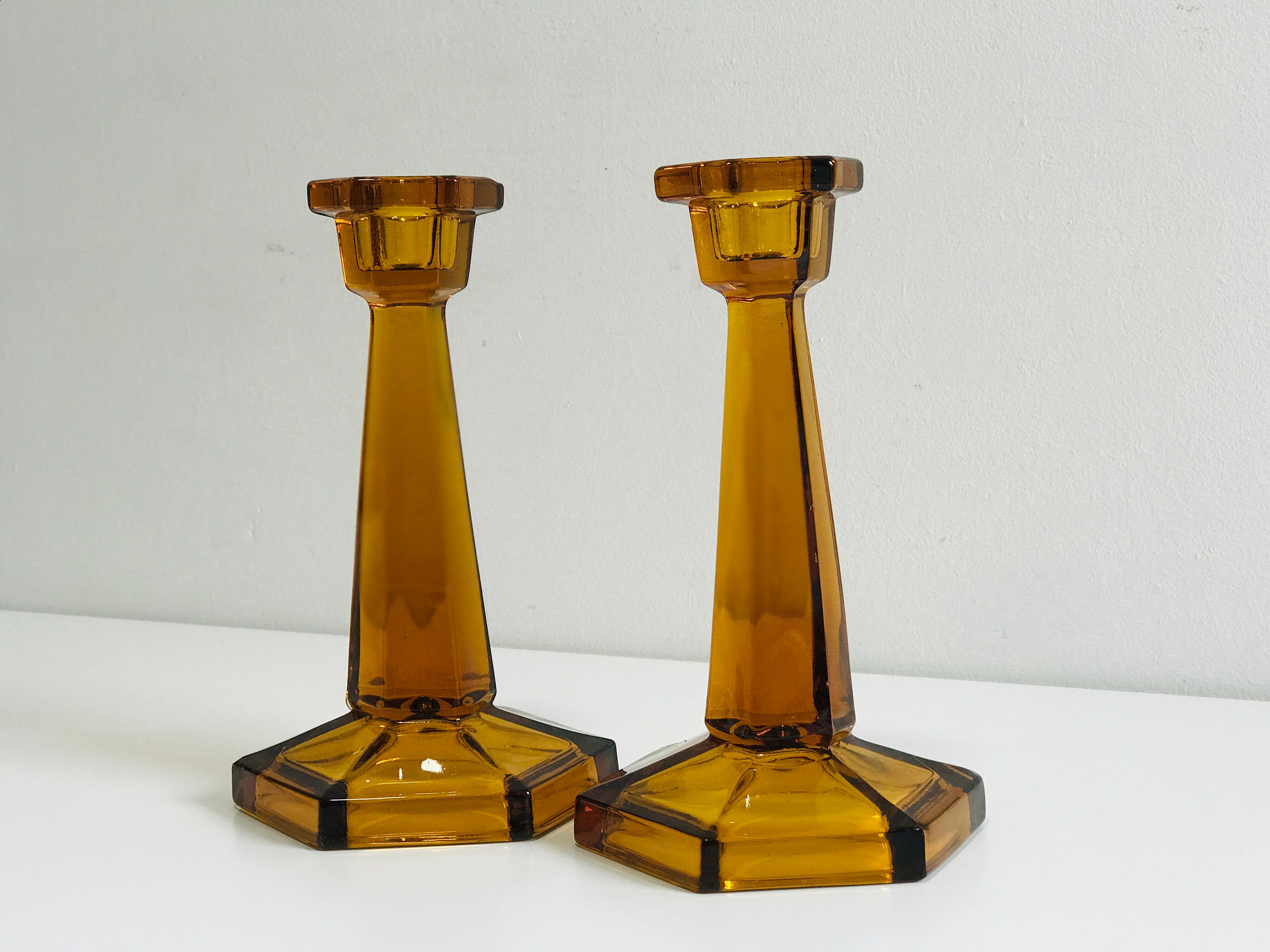 Vintage Amber Glass Candleholders A Pair Chairish