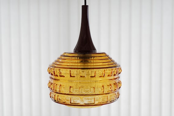 Pendant Light With Amber Glass Shade And A Waffled Cylindric Etsy