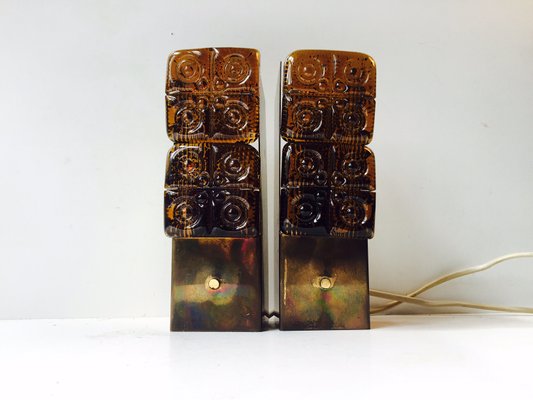 Danish Brass Amber Glass Sconces From Hags 1950s Set Of 2 For