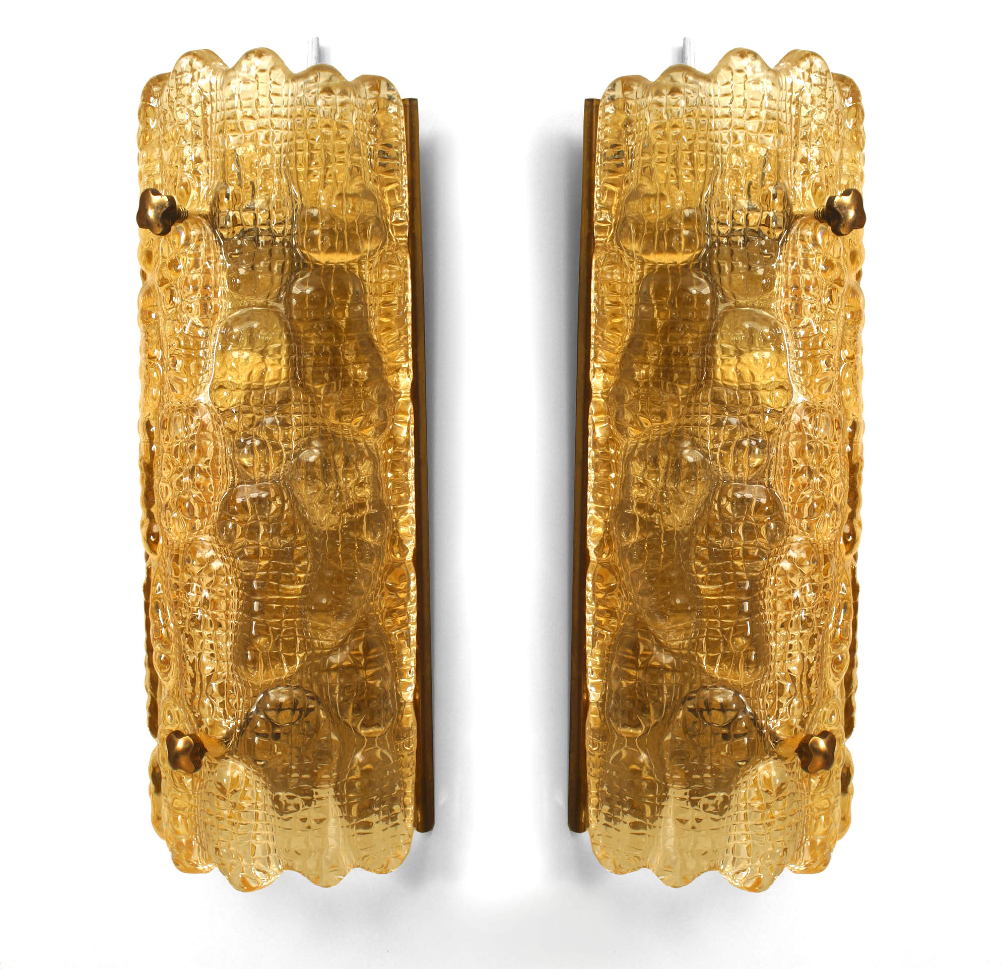 Set Of 2 Amber Colored Pressed Glass Wall Sconces By Vitrika