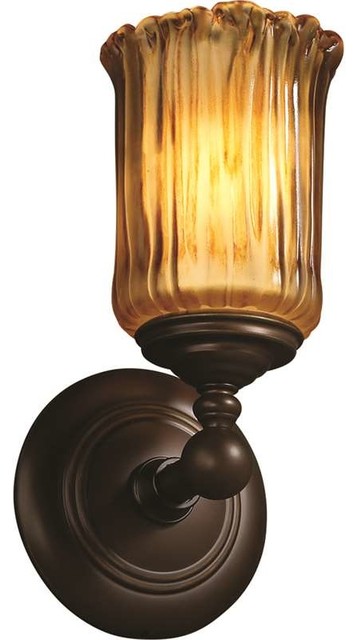 Faberge Led Torch Wall Sconce With Amber Glass In Rubbed Bronze