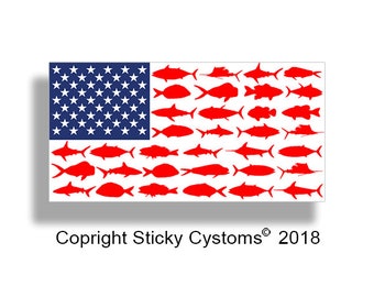 Usa Fish American Flag Sticker Cup Cooler Laptop Boat Fishing Etsy