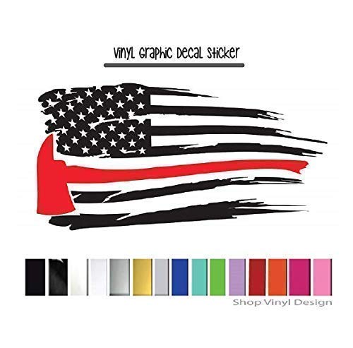 Amazon Com Distressed Usa Flag Firefighter With Red Ax Vinyl Graphic Decal Sticker For Vehicle Car Truck Suv Window Laptop Cooler High Quality Outdoor Rated