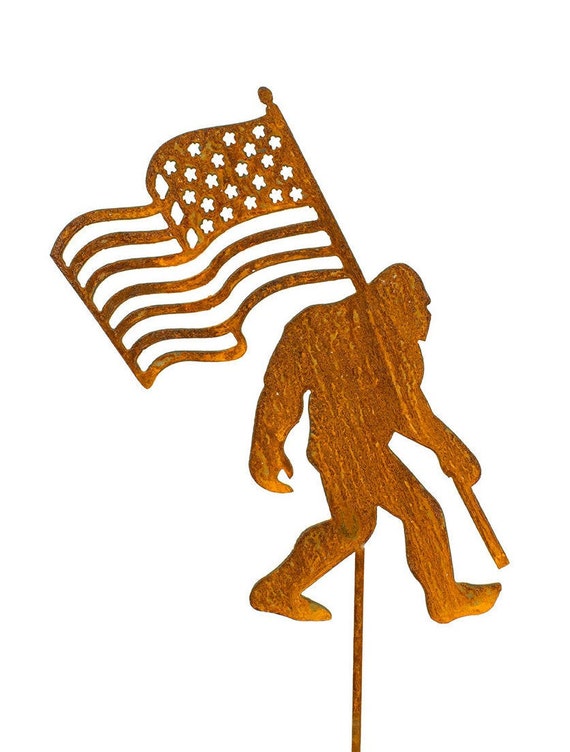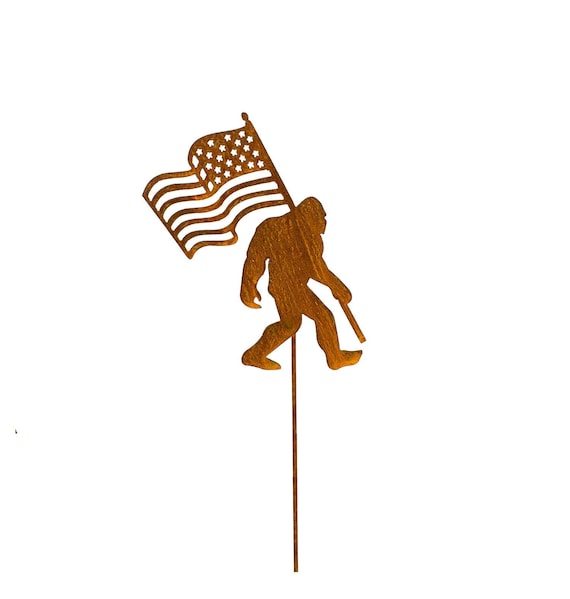 Bigfoot Or Sasquatch With Metal American Flag Garden Stake Etsy