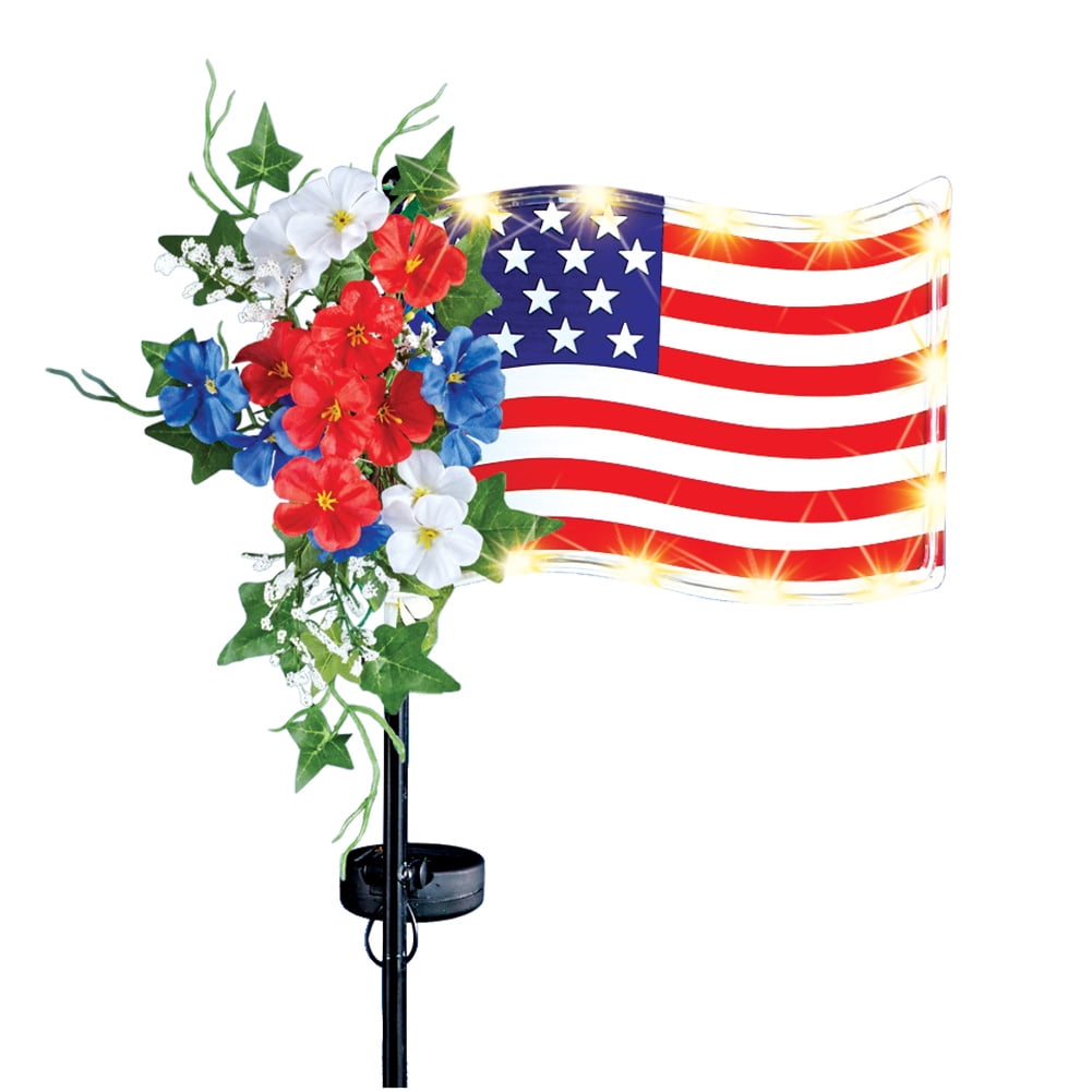 Solar Powered Patriotic American Flag Garden Stake Includes Red