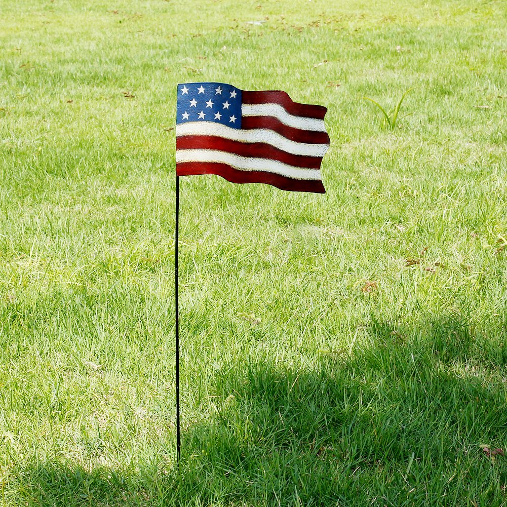 Vintage Style American Flag Yard Stakes Outdoor Metal Flags