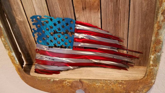 Tattered American Flag Metal Art Battle Worn Flag Tattered Etsy