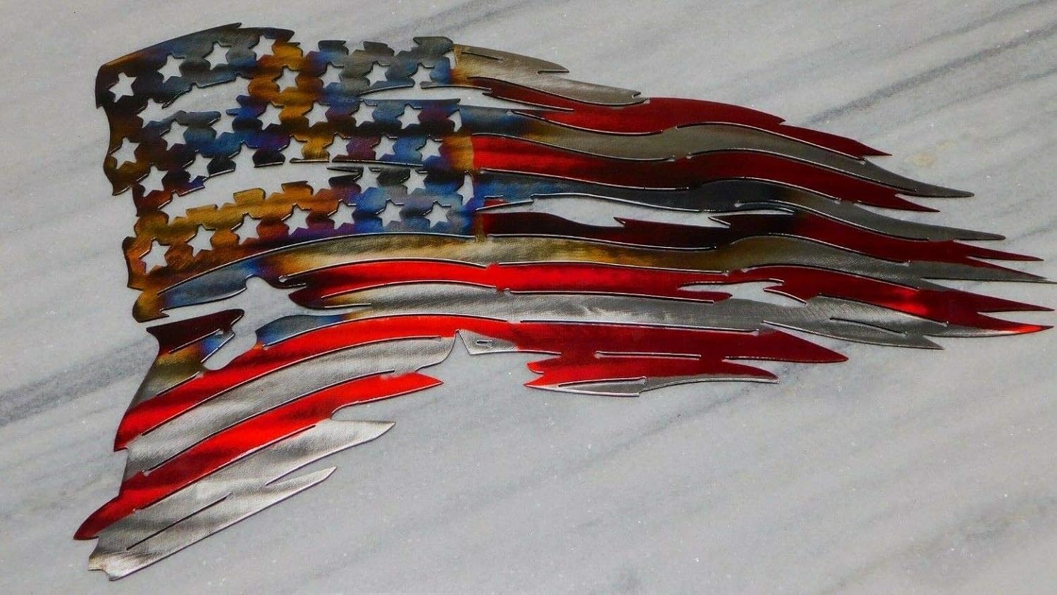 Tattered American Flag Metal Art 36 Battle Torn American Flag Wall Hanging Metal American Flag Home Decor Meylah