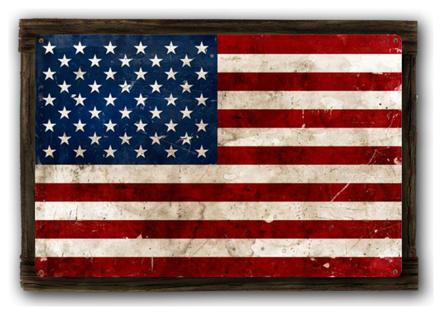 Tattered American Flag Metal Sign 36 X 24 Inches