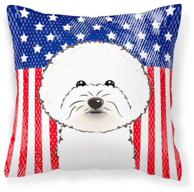 American Flag And Bichon Frise Fabric Decorative Pillow
