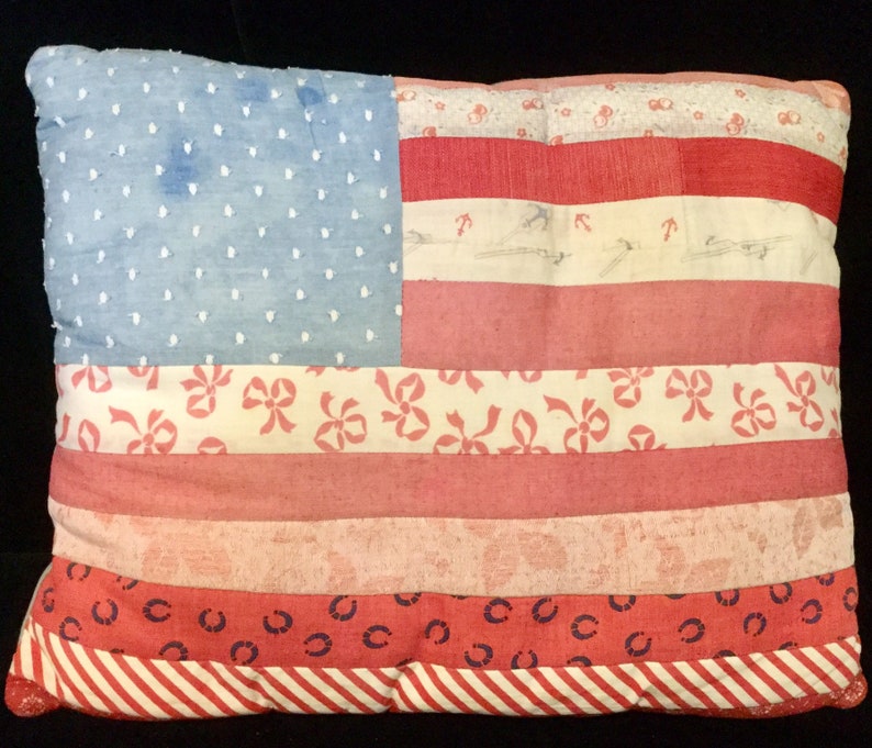 Antique Us Flag Pillow Patriotic Quilted Patchwork Stars Etsy
