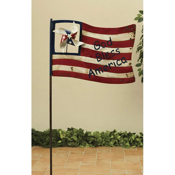 God Bless America Flag Sign With Yard Stake 127a Piazza Pisano