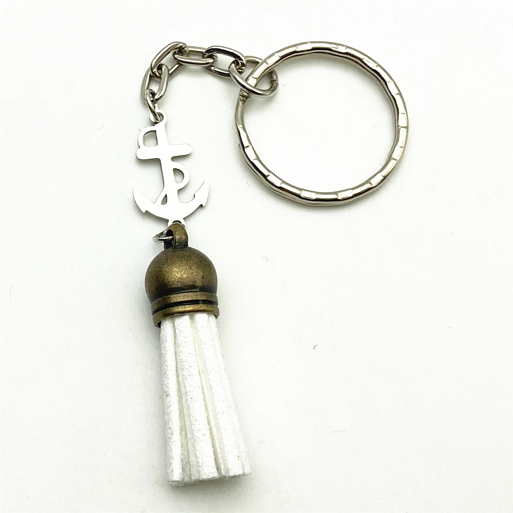 3pieces Gold Tassel Handmake Anchor Charm Keyring Rudder Pendant