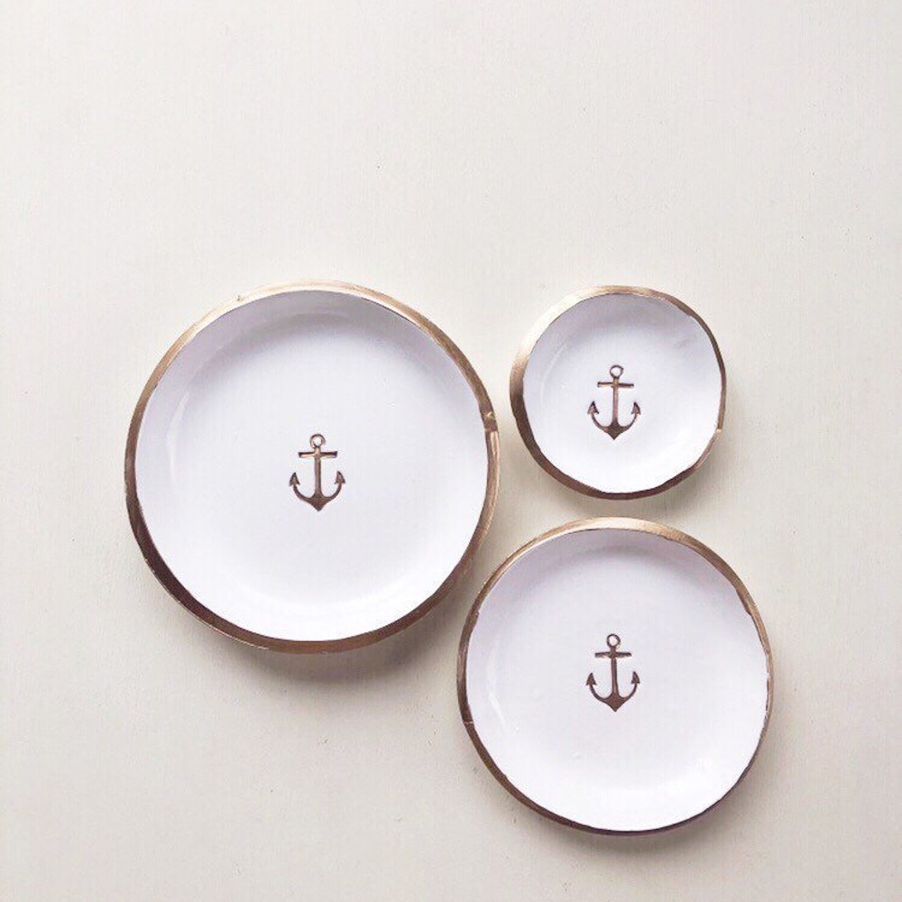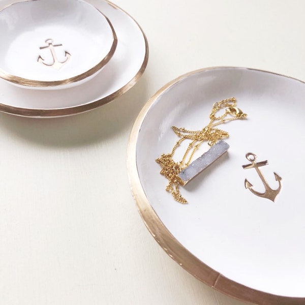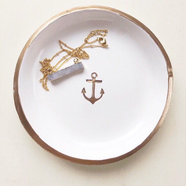 Anchor Beach Lover Gift White And Gold Ring Dish Jewelry Etsy