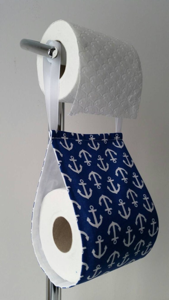 Fabric Toilet Paper Holder Storage Navy With White Anchors Etsy