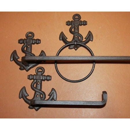 3 Vintage Look Heavy Cast Iron Nautical Bathroom Decor Anchor