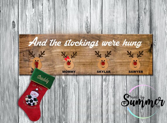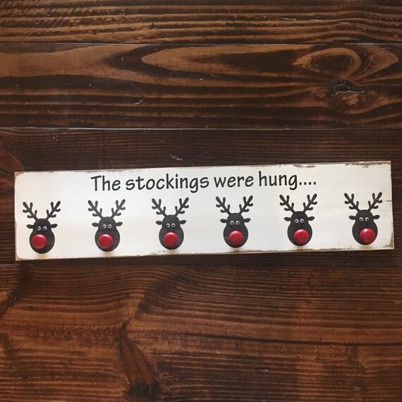 The Stockings Were Hung Wood Sign Stocking Holder Reindeer Etsy