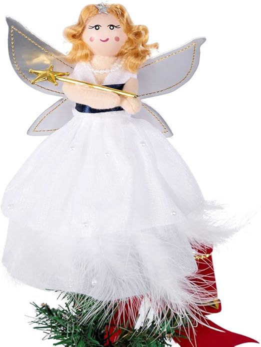 21cm White Angel Christmas Tree Topper Xmas Fairy With Wings