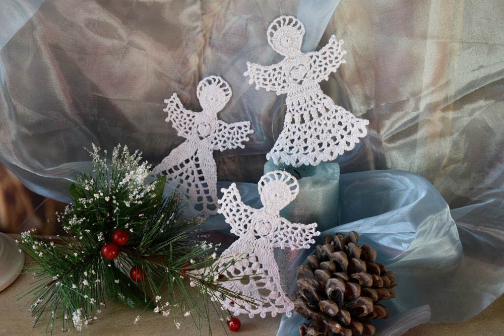Crochet Christmas Angel Set White Crochet Angel Christmas Tree Decorations Christmas Ornaments White Christmas