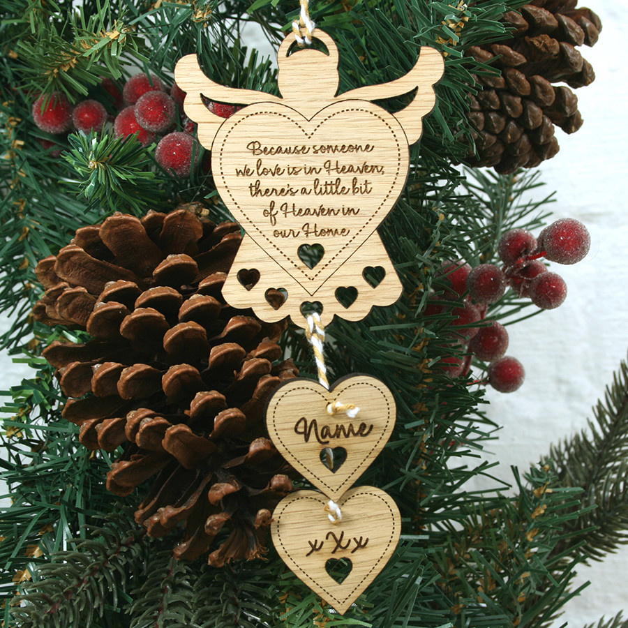 Personalised Wooden In Memory Angel Christmas Tree Decoration Memorial Bauble Ebay