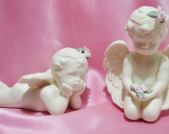 Set Of 2 Cute Kissing Cherub Angel Shelf Sitters Figurines