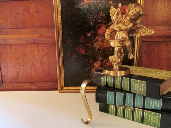 Vintage Stocking Holder Mantel Hanger Solid Brass Angel Fireplace