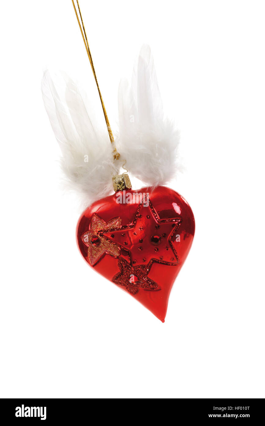 Red Heart Shaped Christmas Ornament With Angel Wings On Gold